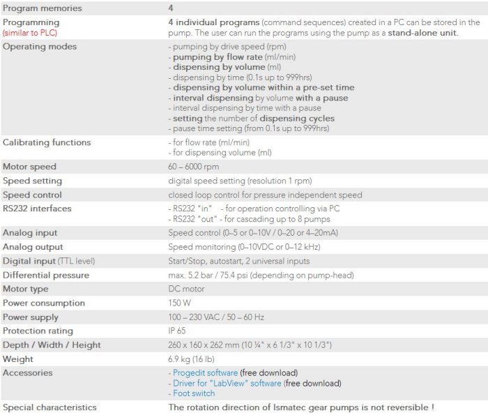 Flow rates 1 – 7020 ml/min (depending on mounted pump-head).Operating panel- 7-button membrane key-pad, LED display.