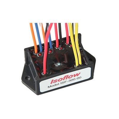 The Model 302 Isoflow is a signal control device that receives the signal from one digital flow sensor and provides two electrically isolated outputs. The Isoflow is compatible with all CST flow sensors and most other sensors producing a square wave output proportional to flow rate. It is not compatible with Hunter HFS sensors. The Isoflow also provides optional control inputs allowing the device to selectively switch outputs from one channel to the other or both. Control inputs are also electrically isolated from each other, the flow input and outputs and the power supply. The Model 302 features four LEDs to indicate operating conditions and aid in diagnostics.