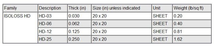 ISOLOSS - Model HD -Isolation Materials