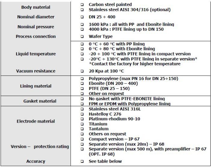 - Accuracy and repeatability data are according to the chosen converter (see converters section).