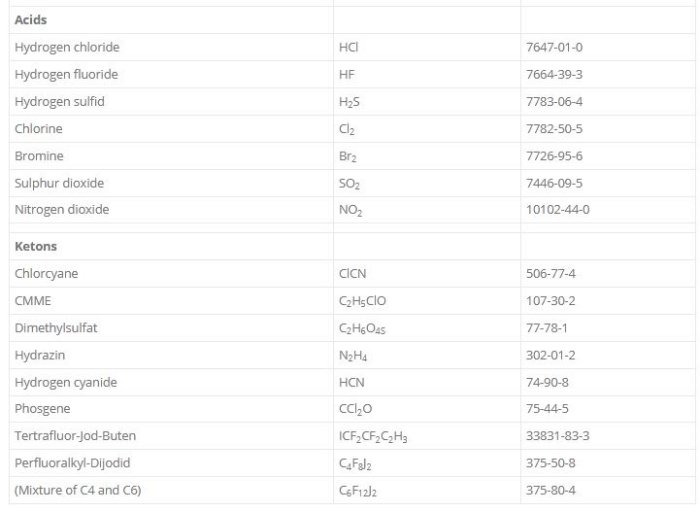 - Safety at work: Hydrocarbons, Chlorine, HCl, Hydrogen cyanide, Phosgene, H2S, CS2, …