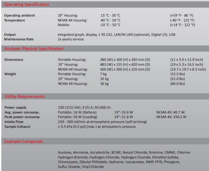 - Principle of Operation: IMS with gaschromatographic pre-seperation (GC-IMS), no carrier gas required