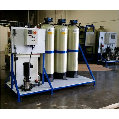 The totally contained System includes a pre-filter, carbon, cation and anion treatment canisters and is self-regenerating and designed for continuous operation in a closed-loop operation. The NEMA control panel includes pump and regeneration controls and digital dual-point TDS control with alarms. All plumbing is schedule 80 PVC and control heads include ceramic seals.