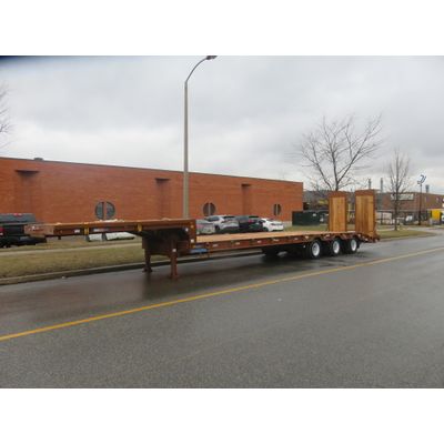 48` O/A Length; 11` Upper, 31` Lower Deck, 6` Beavertail. Tridem IMT/Dexter Axles on 30K Heavy Duty JJ-Fabricated Air-Ride Suspension. 24" Drop, 36" Deck Height, 102" Wide. 1" D-Rings Every 3` Along Lower Deck Sides; Upper Deck with Cargo Style Stake Pockets and 3 Recessed Winches. QT-100 Fabricated Main Beams Built with Positive Camber. Riding on 235/75R17.5" Dual Wheels. Heavy Checkerplate Fenders Above Wheels. Dual-Airbag Air-Operated Rear Wood or Steel Cleat Ramps. Fully Sandblasted Frame, Epoxy Primed, and Polyurethane Gloss Black Topcoat.
