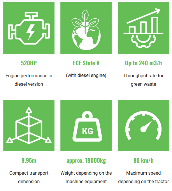 - Preparation of a wide range of biological raw materials as required by an innovative shredding system up to marketable premium products such as potting soil, fertilizer, wood chips, etc.