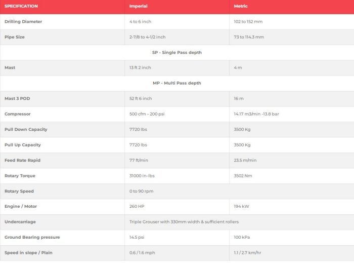 The 500 CFM – 200 Psi (14.17 m3/min -13.8 bar) compressor develops the necessary bailing velocity for efficient clean down the hole drilling.