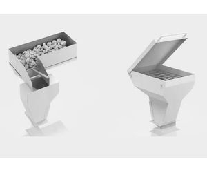 A special hopper is available for quick and easy feeding of drill cores or large amounts of bulk material. The cover can be closed to serve as splash back protection.