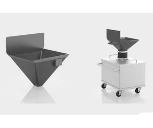The large volume receptacle accepts up to 26 liter of sample and comes with a flexible connection flange and a carrier on wheels. This version is the best choice for dust-free operation.