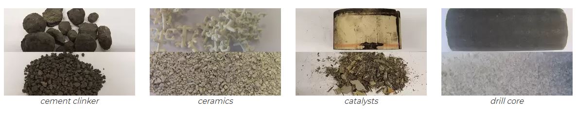 RETSCH’s powerful jaw crushers are ideally suited for preliminary crushing of construction materials, ores, granite, oxide ceramics, quartz, slag, silicon, coal, tungsten alloys, cement clinker, etc.