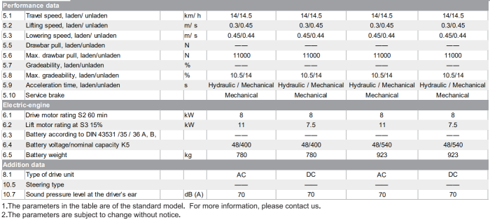 Capacity : 1500/2000kg. Lifting height : 3000mm. Turning radius : 2045/2135mm.