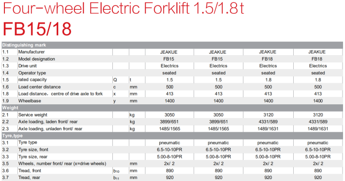 JeakueModel 1.5-2T -Four Wheels Electric Forklift Truck