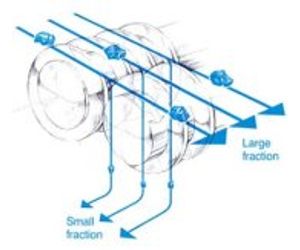 The disc screen rotating discs continually clear out and move along oversize material. The interface openings remain clear and constant for accurate separation. There is rarely any need to halt material flow to clear the unit. Because the discs "carry" the large fraction by striking and bouncing it along, throughput is much higher than with other screen systems.
