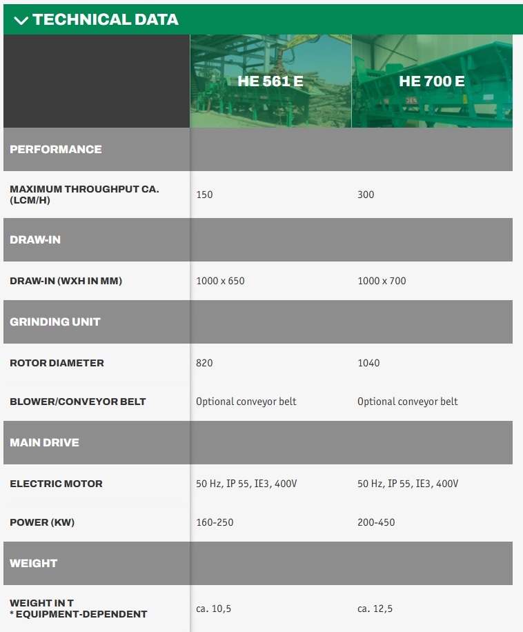 For stationary use in large plants. Throughput rate: 300 srm/h.