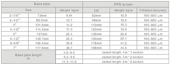 - Excellent anti-corrosion ability:PPS screen jacket is made of high quality stainless steel, and has good ability toresist corrosion from acidalkali and salt, and can meet the special requirements of the wells containing H2S,CO2, and high cl- . The slot will not get wider after long-