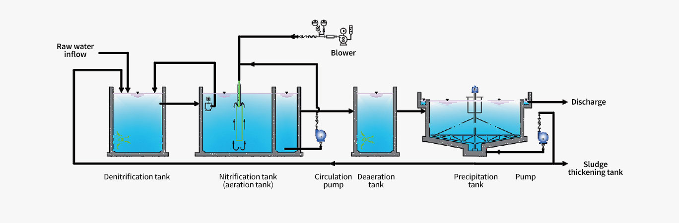 • Proven technology with excellent treatment efficiency thanks to specialized treatment techniques for high nitrogen wastewater such as recycle water, livestock wastewater, and food wastewater