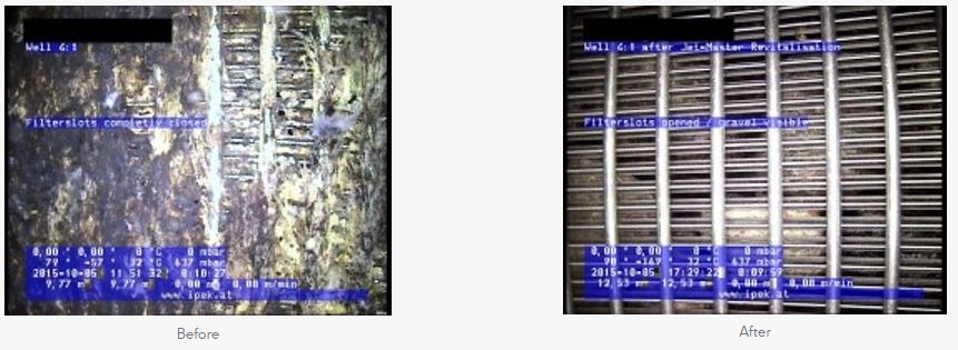 The well capacitiy is tested and filmed before and after the pumping of JET Master®. The results are compiled in a reconditioning report with associated film and handed over to the client.