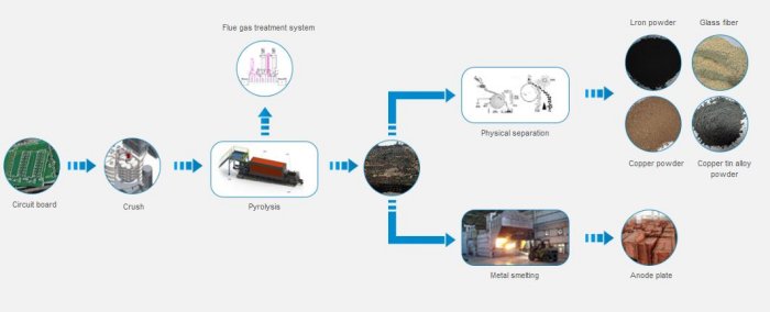 - This system uses high-temperature pyrolysis technology to harmlessly treat organic components such as epoxy resin in the circuit board to dissociate metal and non-metal monomers to ensure physical separation.