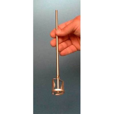 The small mixing shaft and head of the Jiffy Mixer are specially designed to stir viscous solutions (like food toppings, lotions, cell paste, epoxy resins, paint - anything that is "flowable"). It thoroughly disperses and/or dissolves multi-part mixtures or suspensions of powders. Where ordinary propeller-type mixers fail due to vortexing, foaming, or inadequate mix action, the Jiffy Mixer cuts mixing times of viscous materials by up to 90%. The unique design eliminates splashing and entrapment of air.