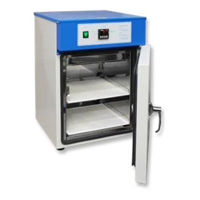 Incubators for drying microscope slides are available is several sizes. They are a variant on our GP style incubators but have flat perforated shelves to help the slide racks stand properly. A gentle fan slowly moves the warm air around to provide optimum drying conditions.