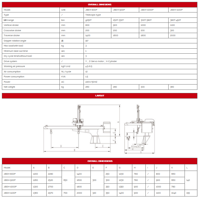 Inside mould least take-out time is 0.5s and dry cycle time is 2.8s, widely used in thin-wall box and disposable cutlery industry. Y\Z axis is driven by servo motor, can realizes productsstacking up on any points at Y\Z dirctions. Can cut the runner by scissors driven by cylinder. Crosswise type uses aluminium alloy double-rails design which applies for patent. Lighter weight and higher bending sterngth makes longlife. Back-installed electric cabinet design improves the whole shock resistance and more stable, reduces the electronic fault . The traverse guide rail installs manual lubrication system, more convenient to maintain. Wheel gear lateral plate struction and constanted overturn torque, makes tools works well. Cylinder`s of lifetime is longer because of lateral cylinder piston rod no skewing.