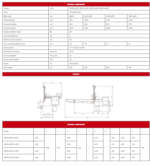 JBF three axis servo open type heigh speed robot series. Crosswise type adopts open design, no frame. X\yvz axis is driven by secvo motor, also can add b or c axis; meanwhile, can stack up at any points at x y z directions. Can cut the runner by scissors driven and inset or embed the accessory by cylinder.