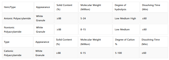 Polyacrylamide (PAM) is a water-soluble high polymer, known as “100 auxiliary agents”, has good flocculation, and is divided into four types of non-ion, anion, cation and amphoteric ion, according to the characteristics of ions.