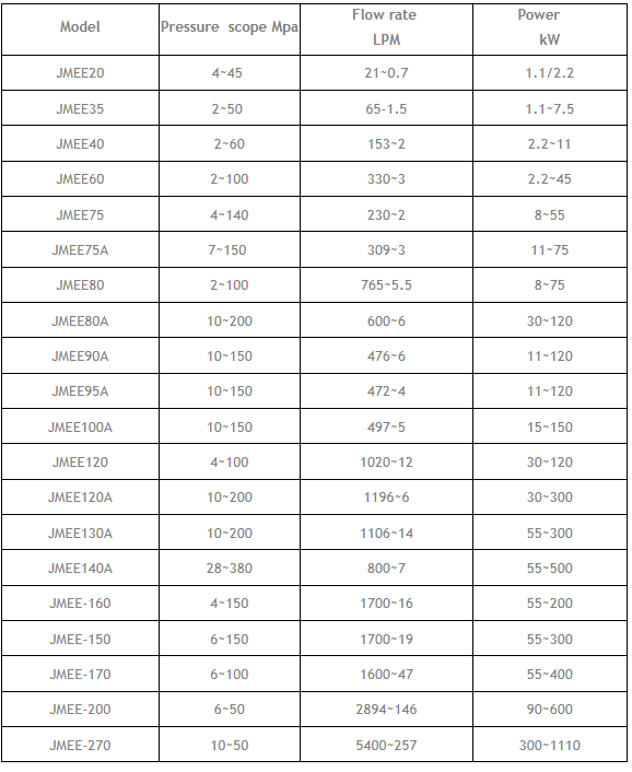 JMEE pumps field-proven dependability, efficiency, durability and versatility give users the best using experience. With highly-efficient pumps and proven dependability, JOY M&E`s products are utilized world-wide in thousands of applications. A wide product range of plunger pumps are available: 3LPM to 1200LPM, 20bar to3000bar. Pumps are available in brass, nickel aluminum b ronze, 316 stainless steel and duplex stainless steel. Transmission type: Belt drive/ Gear box /Speed reduction type Driven type: Electric motor/ Gasoline engine/ Diesel Engine. Pressure: 10bar to 3000bar. Flow rate: 2LPM to 1200LPM. Pressure and flow rate could be customized according to the detail requirements.