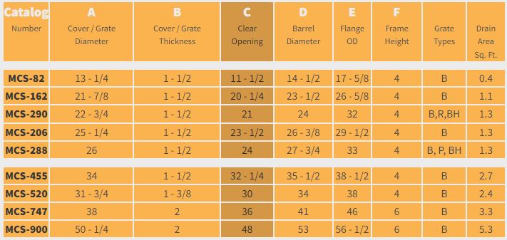 Cast with flange up to anchor into top of concrete slab, Designed for H-20 traffic loading, Options: Bolted, watertight, locking options.