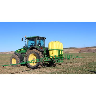 Suspended sprayer with hydraulic metal bars from 12 to 18 meters. High density polyethylene tank, high elastic limit steel chassis, lights and transport plates, trijet nozzle holder with anti-drip, hydraulic elevator with suspension and manual locking.