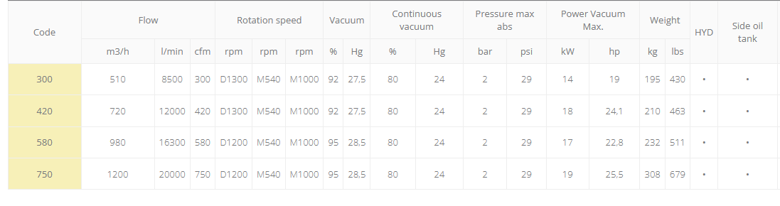 Automatic lubrication. Copper oil piping. Built-in vacuum-pressure changeover valve. Direct transmision or with gearbox. Hydraulic transmission upon request.