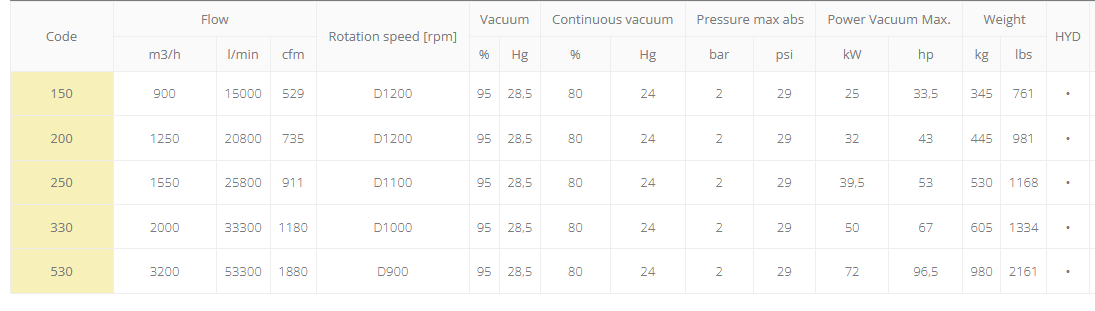 Automatic lubrication. Copper oil piping. Built-in vacuum-pressure changeover valve. Direct transmision or with gearbox. Hydraulic transmission upon request.