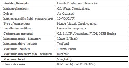 - The medium conveyed doesn’t touch the matched pneumatic valveand coupling lever etc. While normal pumps’ performance will be decreasedgradually because of the damages of driving parts.
