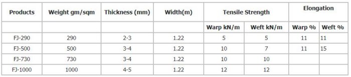 Products Weight gm/sqm Thickness (mm) Width(m)