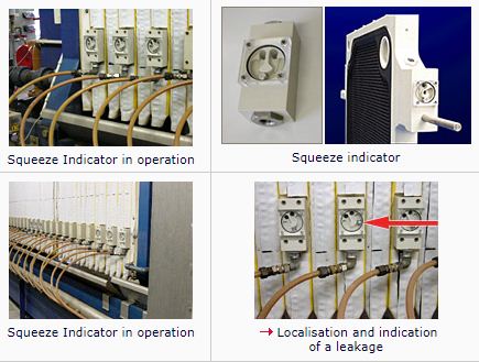 - Squeeze indicator is mounted in the press medium line of each membrane plate or can be integrated in the membrane plate directly.