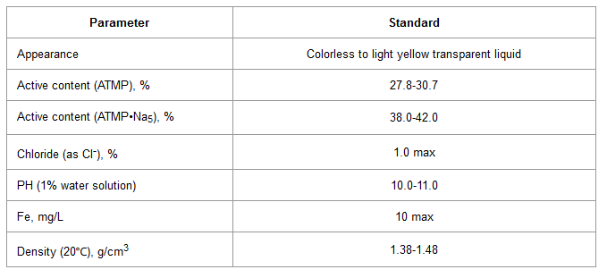 ATMP.Na5 is the sodium salt of ATMP, a scale inhibitor in water treatment system, calcium carbonate CaCO3 in particular. ATMP.Na5 applications includes oilfield water treatment, cooling water treatment, boiler water treatment, industrial and institutional cleaners, etc. ATMP.Na5 is an economic scale inhibitor, has good corrosion inhibition with zinc salt and phosphate. ATMP.Na5 is also a good chelating agent.