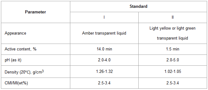 When used as sludge stripper for grade II, the dosage of 150-300mg/L is preferred, when used as boicide, the dosage of 80-100mg/L is preferred, and charges every 3-7 days. No used together with oxidative fungicidal such as chlorine, and no used in cooling water system containing sulfur. When used together with quaternary amine, the effect will be better. When used as industrial fungicide, the dosage of 0.05-0.4% is preferred.