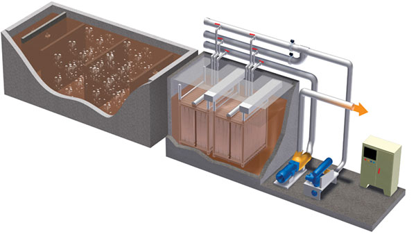 The ZeeWeed MBR process is typically operated at a mixed liquor suspended solids concentration in the range of 8 to 12 g/L. Elevated biomass concentrations allow for highly effective removal of both soluble and particulate biodegradable material in the waste stream. The ZeeWeed MBR process combines the unit operations of aeration, secondary clarification and tertiary filtration into a single process, producing a high quality effluent, simplifying operation and greatly reducing space requirements.