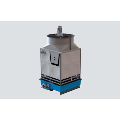 Cool your water flows in different sizes: This range of cooling tower cells is designed to cool small water flows. There are 7 different sizes that cover water flows from 5 to 150 m3 per hour. The towers are completely prefabricated and shop tested. The thermal performance of these cooling towers is optimized with regard to the use of water and power consumption. Noise production of the standard tower is low due to the configuration with an axial ventilator. In case of severe noise requirements several extensions are possible. The equipment is full corrosion resistant and provides a long lasting reliable solution for generation of cold water.