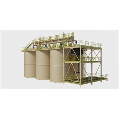 The Pumpcell circuit is a process route used for CIP or RIP applications. The Pumpcell represents a new approach to the design of conventional cascade CIP adsorption circuits. The Pumpcell is in essence a complete CIP plant incorporating a Pumpcell mechanism and launder system enabling the carousel mode of operation to be employed. The carousel mode of operation involves keeping the carbon as a discreet batch within each contactor and rotating the pulp feed and discharge positions.