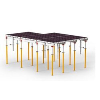 KEVA-DECK has been designed for standard use in constructing slabs with thickness up to 43 cm.With the small panel span (75 cm) and,if required,a middle support under the main beam,slabs up to 109 cm thick can be formed.KEVA-DECK`s range of applications extends from residential construction through to industrial construction projects.The systematic assembly sequence and lightweight system components made of aluminium accelerate working operations.In addition,the possibility of early striking with the drophead system reduces on-site material requirements.