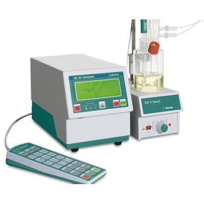 Inexpensive coulometer including titration cell and generator electrode with diaphragm for water content determination down to trace levels. This coulometer has become indispensable in many laboratories thanks to its reliability, its backlit graphical display, the multi-language dialog and the simplicity of its operation. The clear display provides information regarding the relevant titration parameters and unambiguous indication of the progress of the titration in the form of a curve showing µg water over time. Recommended measuring range: 10 µg - 200 mg absolute water.