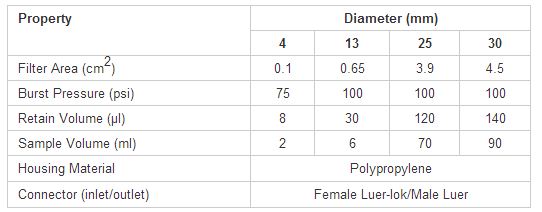 • The use of retainer ring seals the polypropylene housing, preventing leaking and sample loss.