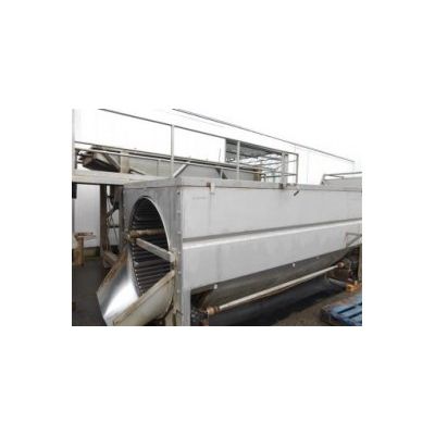 Kiremko barrelwasher. Complete with frame and water collection / recycling bin. Made of stainless steel. Dimensions of the drum: 140 cm x 400 cm. Based on mutual friction, the drum washer will remove clay, sand and soil from the potatoes.The directly driven drum is provided with alternately smooth and trim edged steel strips. Not a single unevenness is able to damage the potato. Thanks to its excellent accessibility, the drum washer is easy to clean. Naturally, the system makes efficient use of water