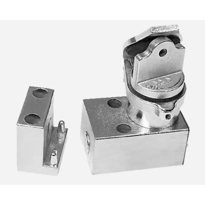 All Type D interlocks have two parts: a main body with one or more cylinders and a latch block. Proper alignment of both parts is crucial to the operation of a Type D interlock. When the main body is separated from the latch block, the lock bolt is retained in the withdrawn position by concealed latch pins; the key(s) is trapped in the lock whenever the two parts are separated. When the door the Type D is mounted on is closed, the key(s) can be turned to extend the lock bolt into the latch block, securing the door. Only extending the lock bolt, after properly closing the door, should allow release of the key(s).