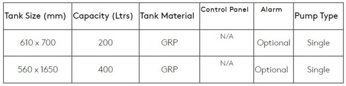 - 3 pump options; effluent low head, effluent high head and sewage vortex offering complete flexibility
