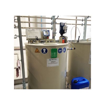 KLC flow neutralization (DNA) protects subsequent process steps and prevents corrosion in the evaporator. The highy efficient system adjusts the pH value of the process water, quickly neutralizing acidic pH values. A neutral pH is required for the evaporation process. A pH electrode continuously monitors the pH of the incoming process water. The system automatically adds alkali when required. An integrated stirring device ensures continuous blending. pH set-point and limit can be individually configured. The modular KLC-DNA is delivered ready for connection, integration into new and existing processes is very easy. KLC-DNA can also be used as a receiver tank. KLC-DNA control is integrated into the KLC evaporator control. Tank sizes comply with the KLC evaporator`s volume requirements.
