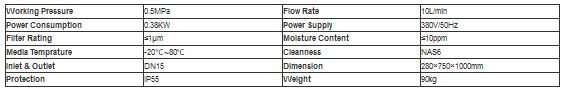 - It can efficiently remove dissolved water, and control the water content,flash point and dielectric strength.