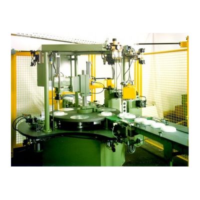 As previously mentioned, the feed unit is provided with an adjusted half-dish that takes the part with its manually fitted rings from the conveyor belt and supplies it to the rotary table. The alternatives assume that the tool automatically adjusts to the sizes.