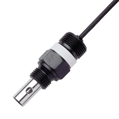 Compact 2-electrode sensor with coaxial stainless-steel electrodes, integrated temperature detector and fixed cable.