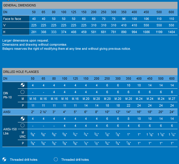- EN1092 PN10 and ANSI B16.5 (class 150)